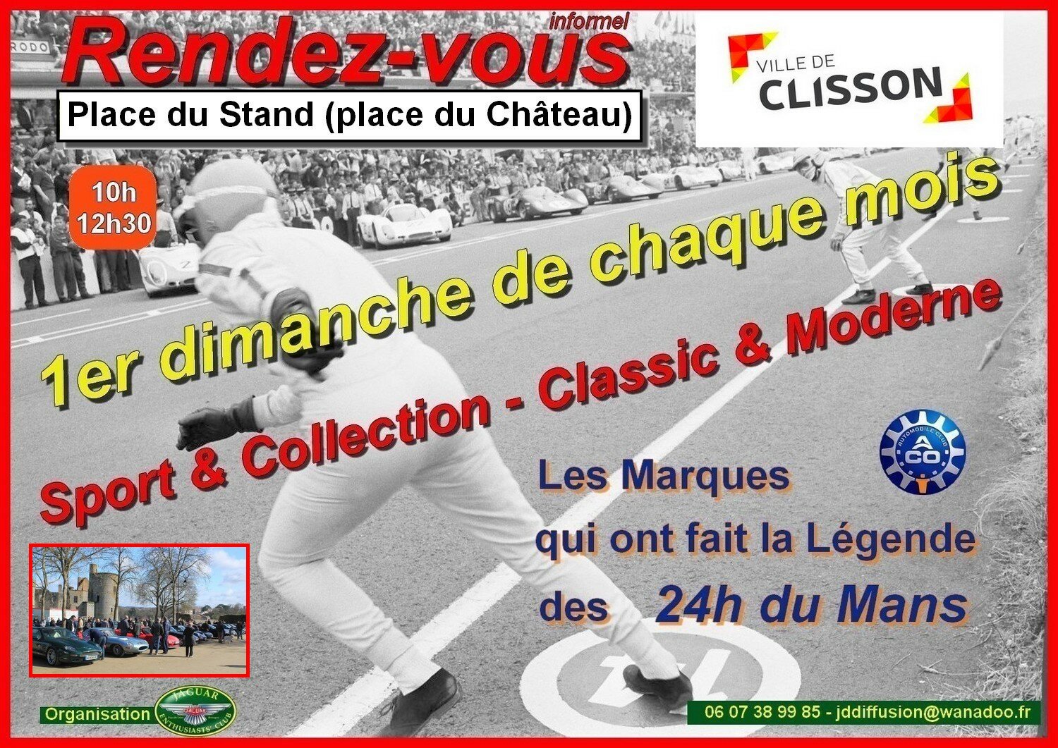 Un rendez-vous récurent organisé par le Jaguar Enthusiast’s Club (JEC) Pays de Loire et Bretagne le 1er dimanche de chaque mois. Sont conviées les marques ayant participé aux 24 h du Mans. J’y vais ponctuellement en Jaguar ou en Rover. Et oui, Rover BRM y a couru. Au plaisir de vous y croiser autour d’un café offert par le JEC. -