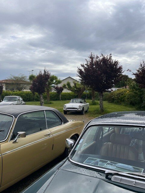 Didier le " proprio " de la Sunbeam, parle aussi de plusieurs modèles ( cylindrée) et d'une avec les ailes moins jolie plus angle droit. Bon des photos de dimanche, qui fut une plus belle journée pour plusieurs raisons; météo, accueil de nos hôtes, cadre, repas, etc...